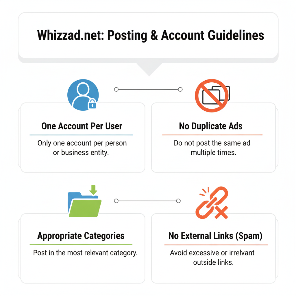 Yes, for the safety of our community, certain items and services are not permitted on Whizzad. For a complete list of prohibited items, please consult the “Posting Rules” section within our Terms and Conditions.